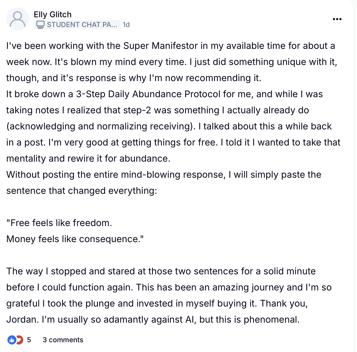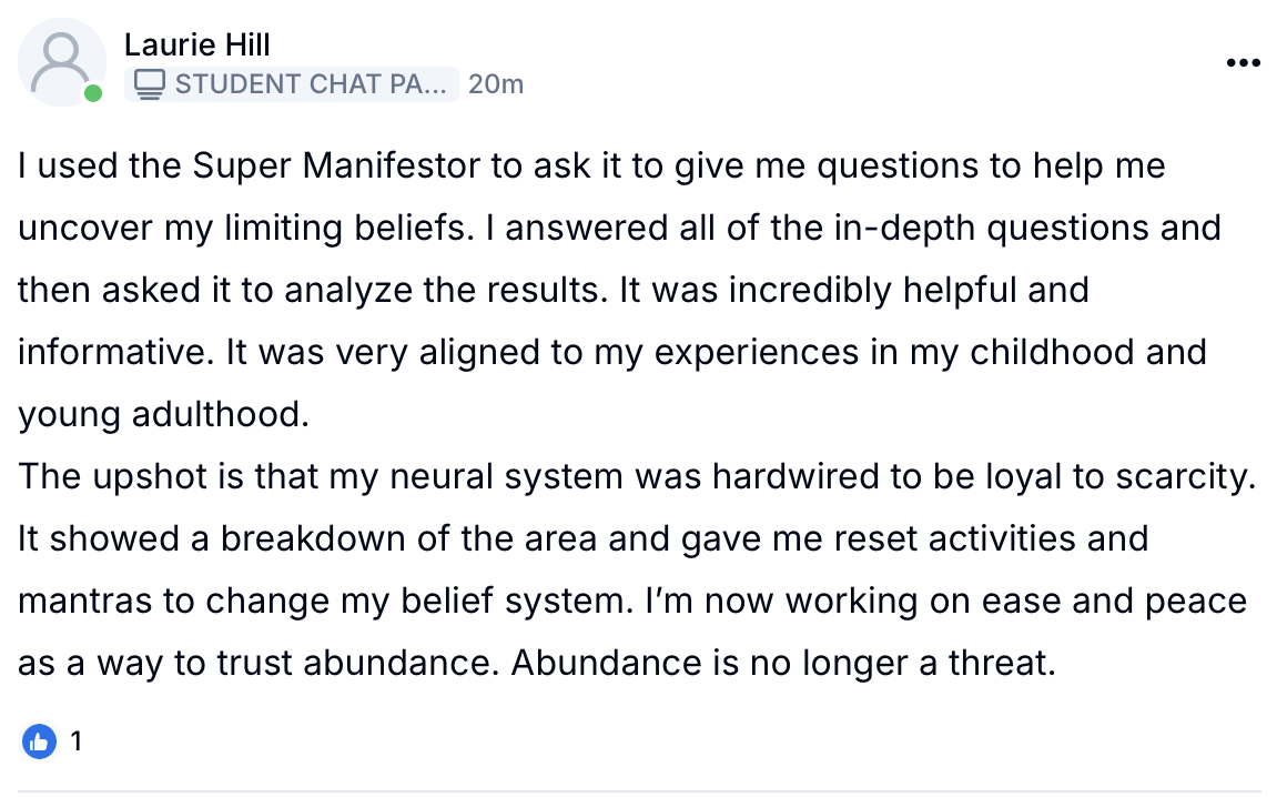 Everything inside Super Manifestor GPT is grounded in neuroscience, nervous system regulation, subconscious reprogramming, and identity work. This is not spiritual, woo woo, new age advice, no no no..... I trained this AI MYSELF:Â with my decade of education, my decade of research on the brain, and the exact custom blueprint I use for my private clients who pay thousands for mentorship. This is personalized, science backed manifestation & mindset mentorship like you've never seen before!Â
